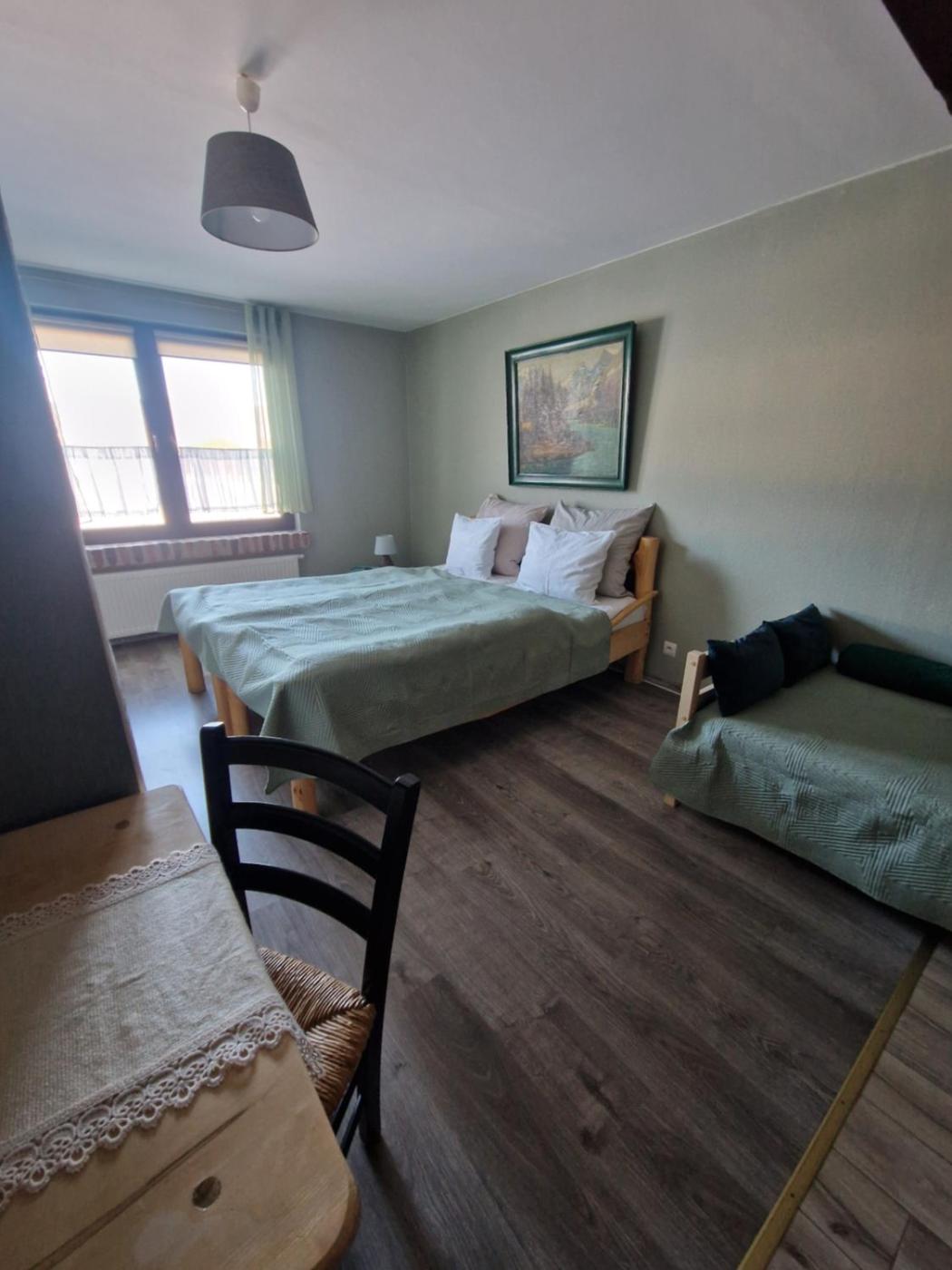 Apartament z 2 sypialniami. The dormitory room provides an electric kettle, a sofa, as well as a private bathroom featuring a shower. Guests will find a stovetop, a refrigerator, kitchenware and a microwave in the well-fitted kitchenette. The dormitory room also has a barbecue. The dormitory room offers a flat-screen TV with satellite channels, a private entrance, a dining area, a wardrobe as well as garden views. Pokój Wieloosobowy - 6 osobowy. Powierzchnia pokoju ok.: 90 mkw. ;