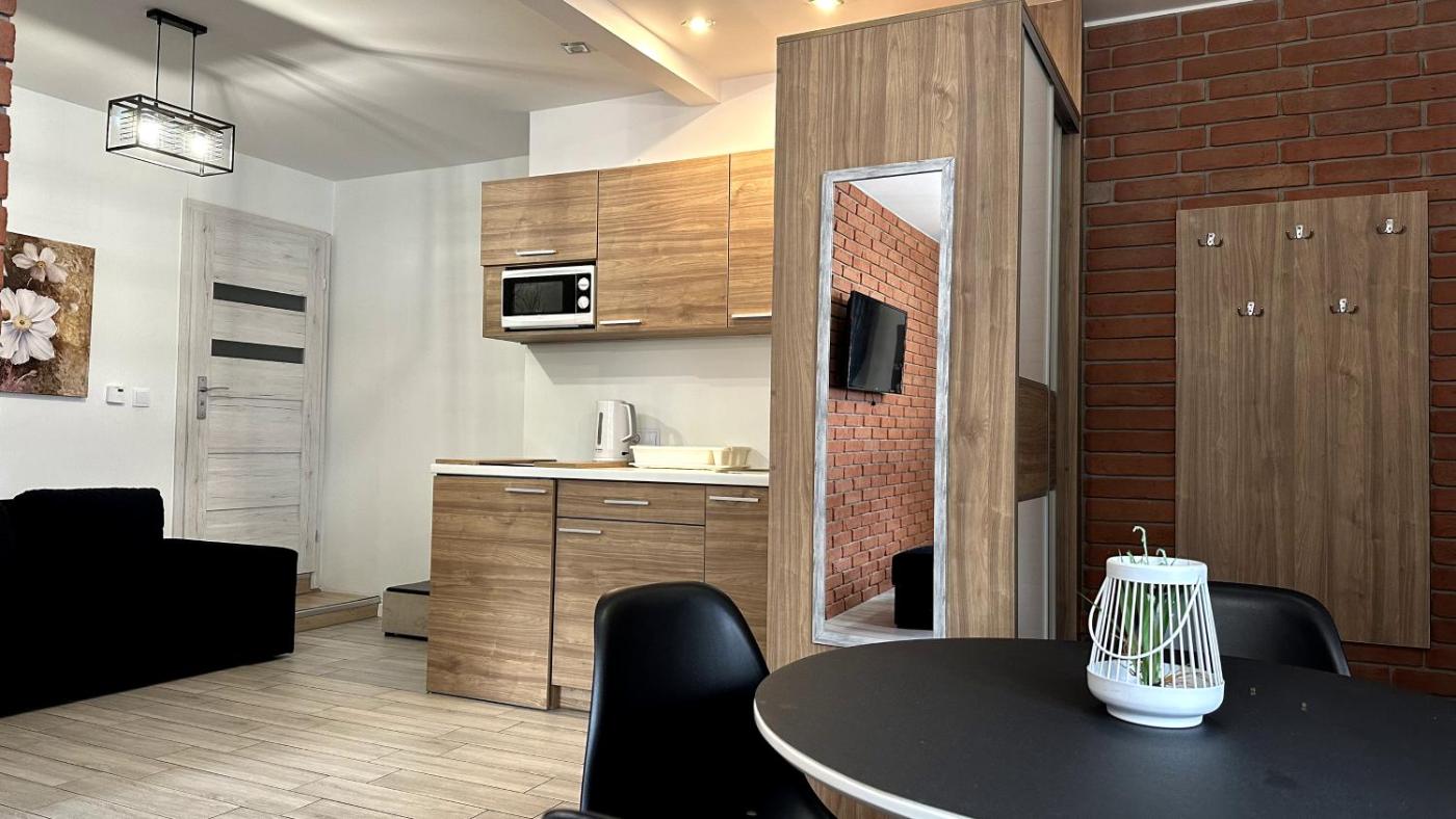 Apartament. This apartment is comprised of 1 living room, 1 separate bedroom and 1 bathroom with a walk-in shower and free toiletries. Guests will find a stovetop, a refrigerator, kitchenware and a microwave in the well-fitted kitchen. The apartment also has a barbecue. The apartment features parquet floors, a seating area with a flat-screen TV, a tea and coffee maker, a dining area as well as a quiet street view. The unit offers 4 beds. Apartament - 6 osobowy. Powierzchnia pokoju ok.: 40 mkw. ;