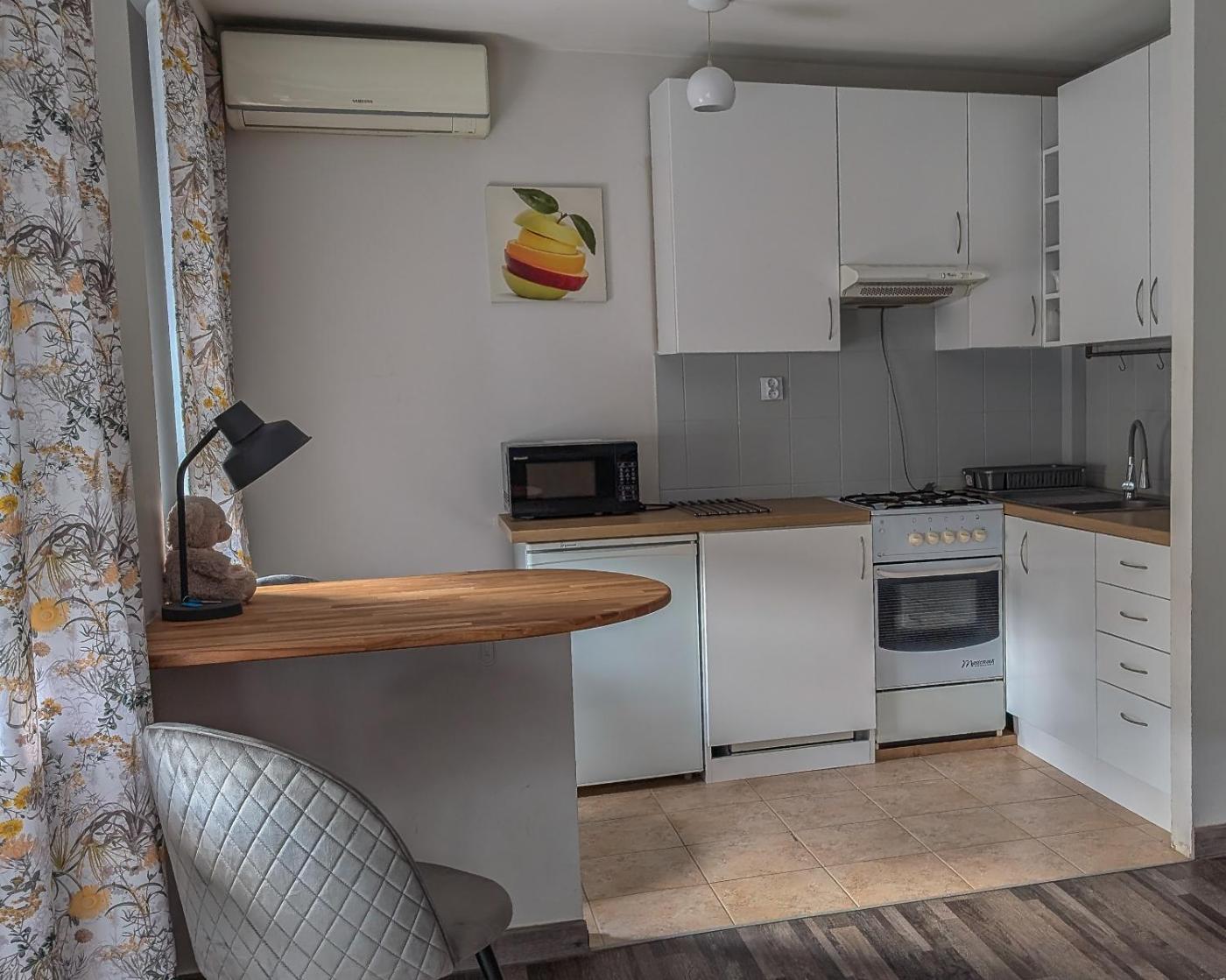 Apartament typu studio. Boasting a private entrance, this apartment comes with a kitchenette, 1 bedroom and 1 bathroom with a shower and a hairdryer. Guests can make meals in the kitchenette that features a stovetop, a refrigerator, kitchenware and an oven. Featuring a balcony with garden views, this apartment also features a washing machine and a flat-screen TV with cable channels. The unit has 2 beds. Apartament - 4 osobowy. Powierzchnia pokoju ok.: 30 mkw.
